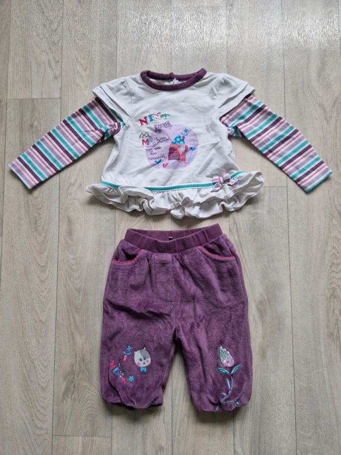 Joli petit ensemble se composant d'un t-shirt - tunique et d'un pantalon Très bon état Taille 3 mois #locita853moisfille