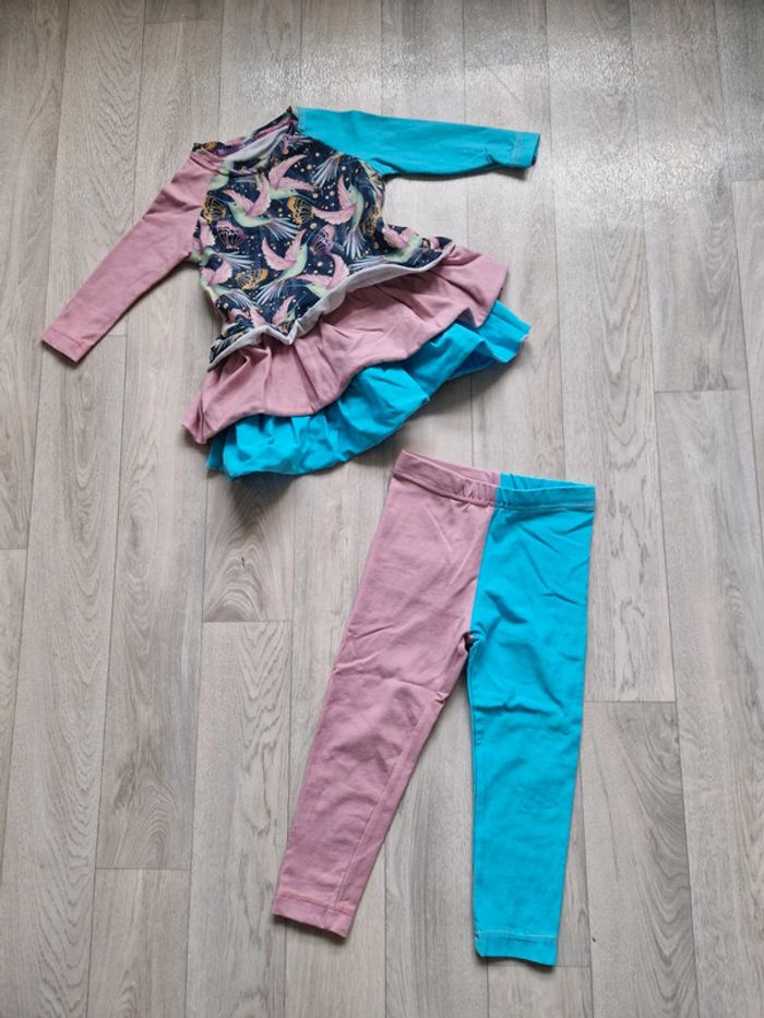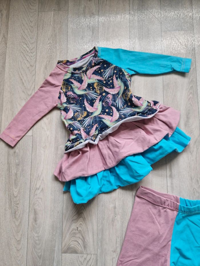 Joli ensemble fait par une créatrice se composant d'une tunique et d'un legging avec motifs "oiseaux" Très bon état - comme neuf - peu porté Taille 2 ans #locita852ansfille