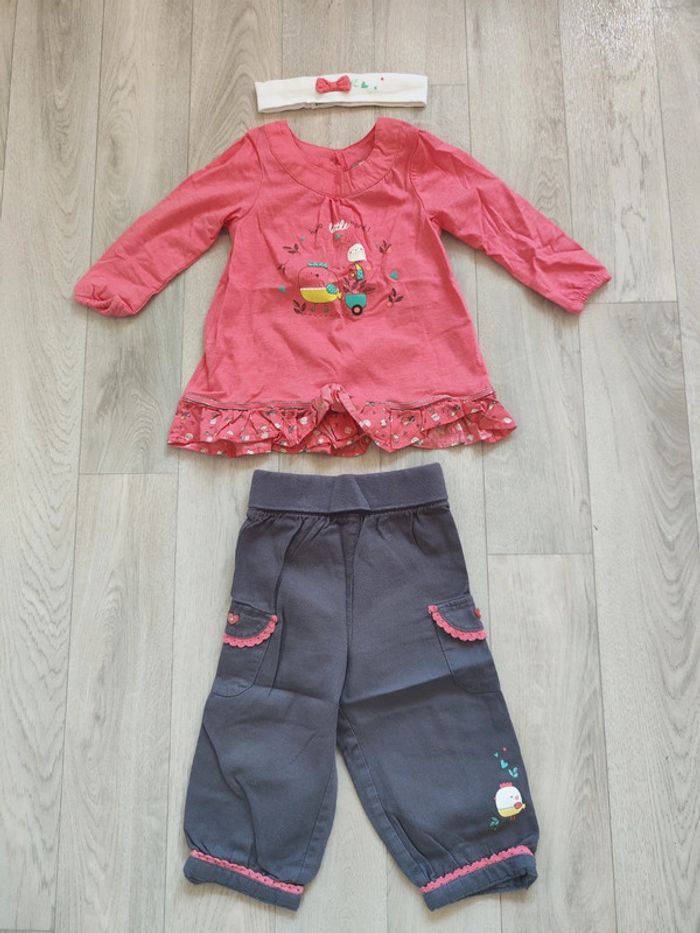 Joli petit ensemble de la marque Orchestra se composant d'un bandeau, d'un t-shirt manches longues et d'un pantalon Très bon état Taille 12 mois #locita8512moisfille