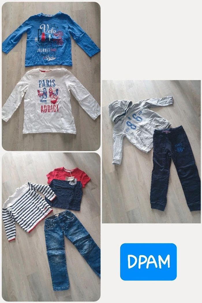 Jolis ensembles du même thème de la marque DPAM se composant d'un gilet, d'un t-shirt manches courtes (neuf et étiquet), de 2 t-shirts manches longues, d'un pull, d'un bas de jogging et d'un jean Très bon état Taille 6 ans pour les hauts et taille 5 ans pour les bas (taille 6 ans) #locita856ansgarçon