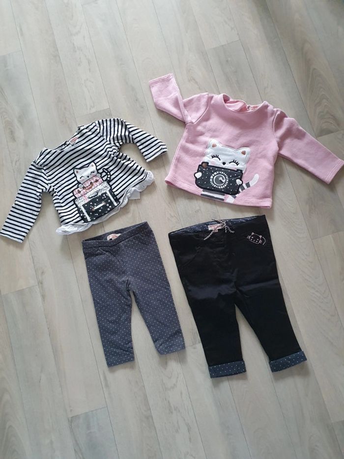 Joli ensemble de la marque DPAM se composant d'un gilet, d'un pull, d'un t-shirt, d'un legging et d'un pantalon. Le gilet et le pantalon sont neuf, le reste porté 2x max Taille 6 mois #locita856moisfille