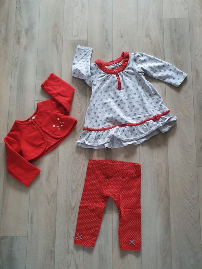 Joli ensemble de la marque Orchestra se composant d'un boléro, d'une tunique et d'un legging. Très bon état, pas de tâches ni de trou Taille 6 mois #locita856moisfille