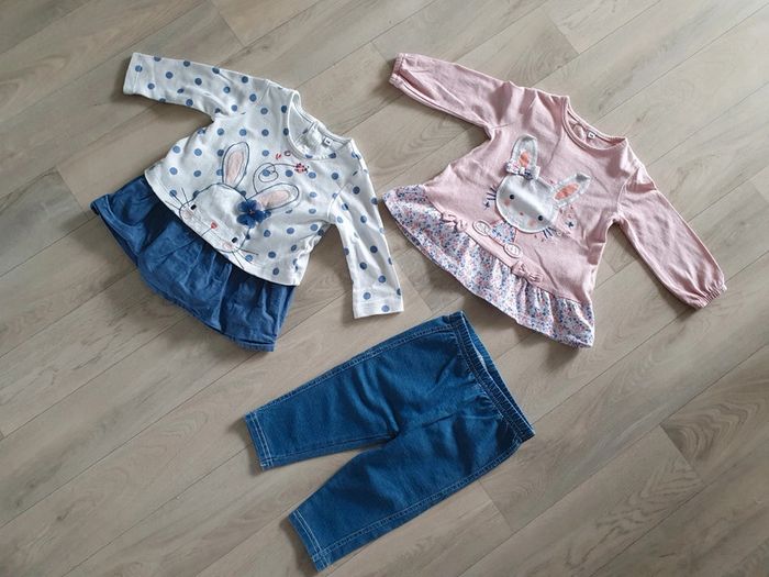 Joli ensemble se composant d'une tunique, d'un pull et d'un jegging Très bon état (quelques bouloches) mais rien de bien méchant, pas de tâches ni de trou Taille 6 mois #locita856moisfille