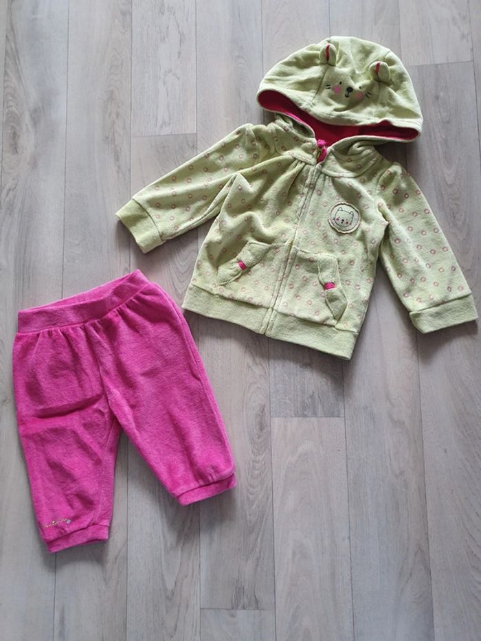 Joli petit jogging de la marque Orchestra se composant d'une veste zippée et d'un bas. Porté mais en bon état. Taille 6 mois #locita856moisfille