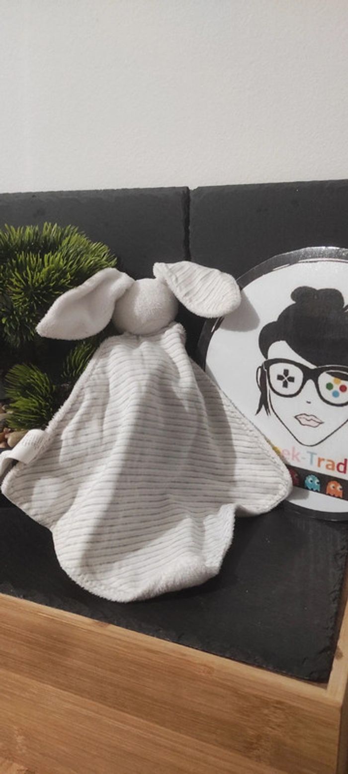 doudou lapin plat rayé sergent major rayure blanc gris carré losange Mouchoir - photo numéro 1