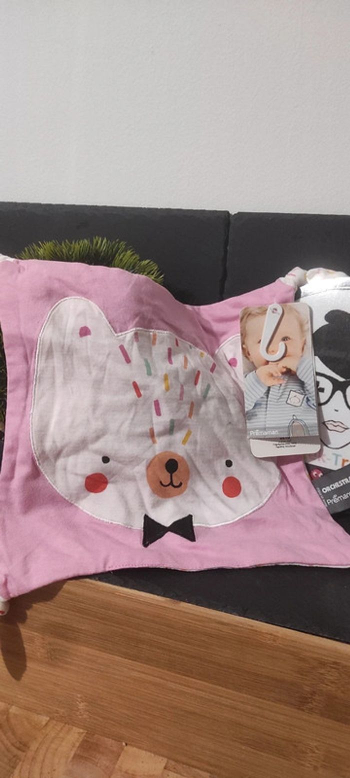 doudous plat blanc confettis multicolore ours orchestra noeud papillon rose premaman