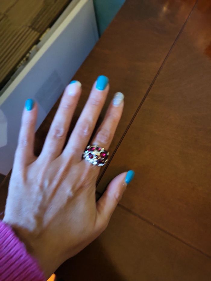 Bague brillante argentée et rouge - photo numéro 6