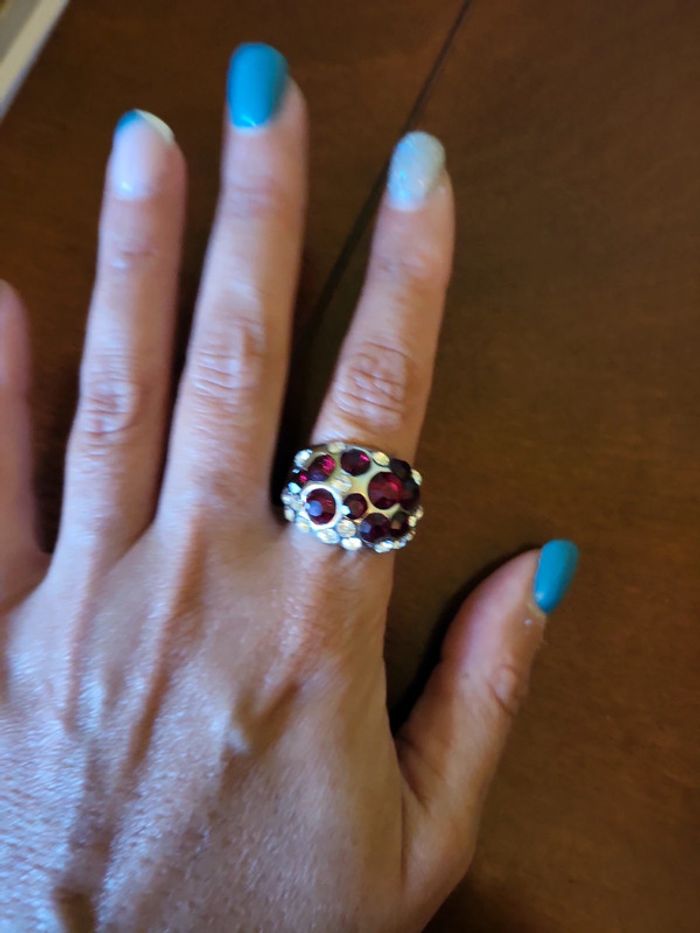 Bague brillante argentée et rouge - photo numéro 1