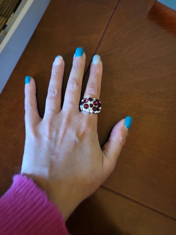 Bague brillante argentée et rouge - photo numéro 7