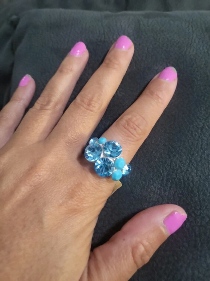 Bague en argent bleue taille 53 neuve - photo numéro 5