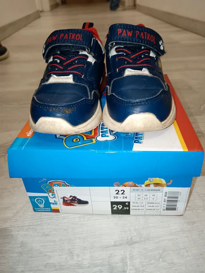 Baskets à scratch lumineuses . Marque pat patrouille. Taille 22. Beaucoup portées. Mais encore en bon état. Griffées sur l'avant. La lumière fonctionne sur les 2 baskets. #vetementbebegarcon18mois_laurene88 #vetementbebegarçon18mois #basketsascratch
