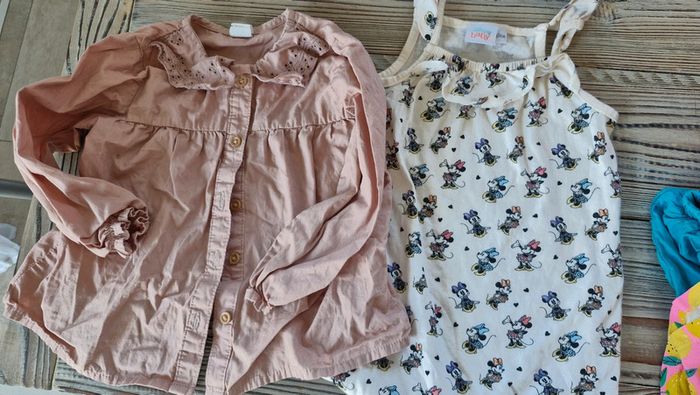 Chemisier col claudine h&m taille 12/18 mais 86cm donc grand Une combi short Disney jamais porté juste lavée taille 24 mois