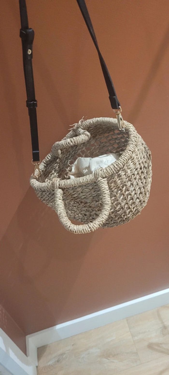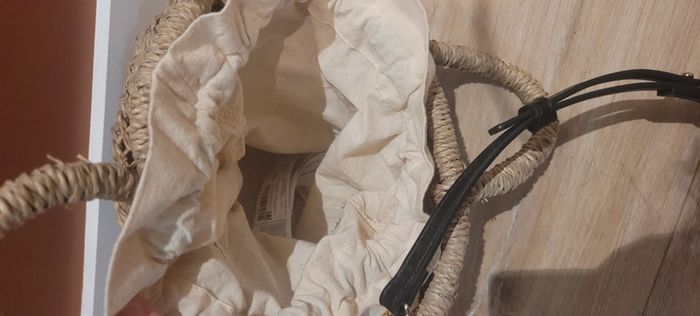 En bon état, un côté un peu rentré a l'intérieur mais une fois rempli ça se remet. Pochette en tissus a l'intérieur, petite bandoulière