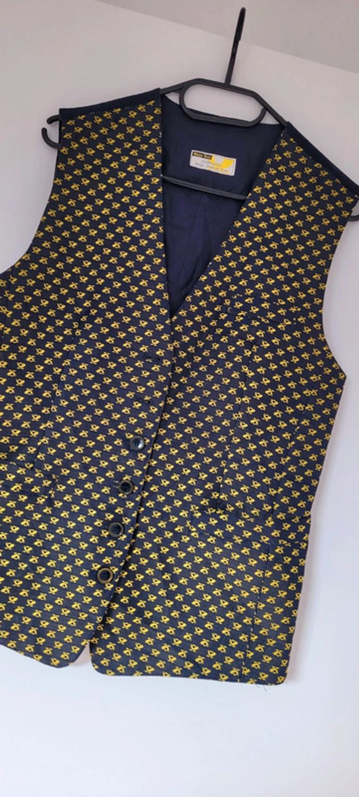 Magnifique Gilet pièce Vintage Costume Tailleur Steilmann Taille 38 Neuf excellent état Se porte aussi bien ouvert que fermé pour un sublime look rétro. Avec poches à l'avant et une fausse poche sur la poitrine. Maison non fumeur et sans animaux Envoi rapide et soigné.