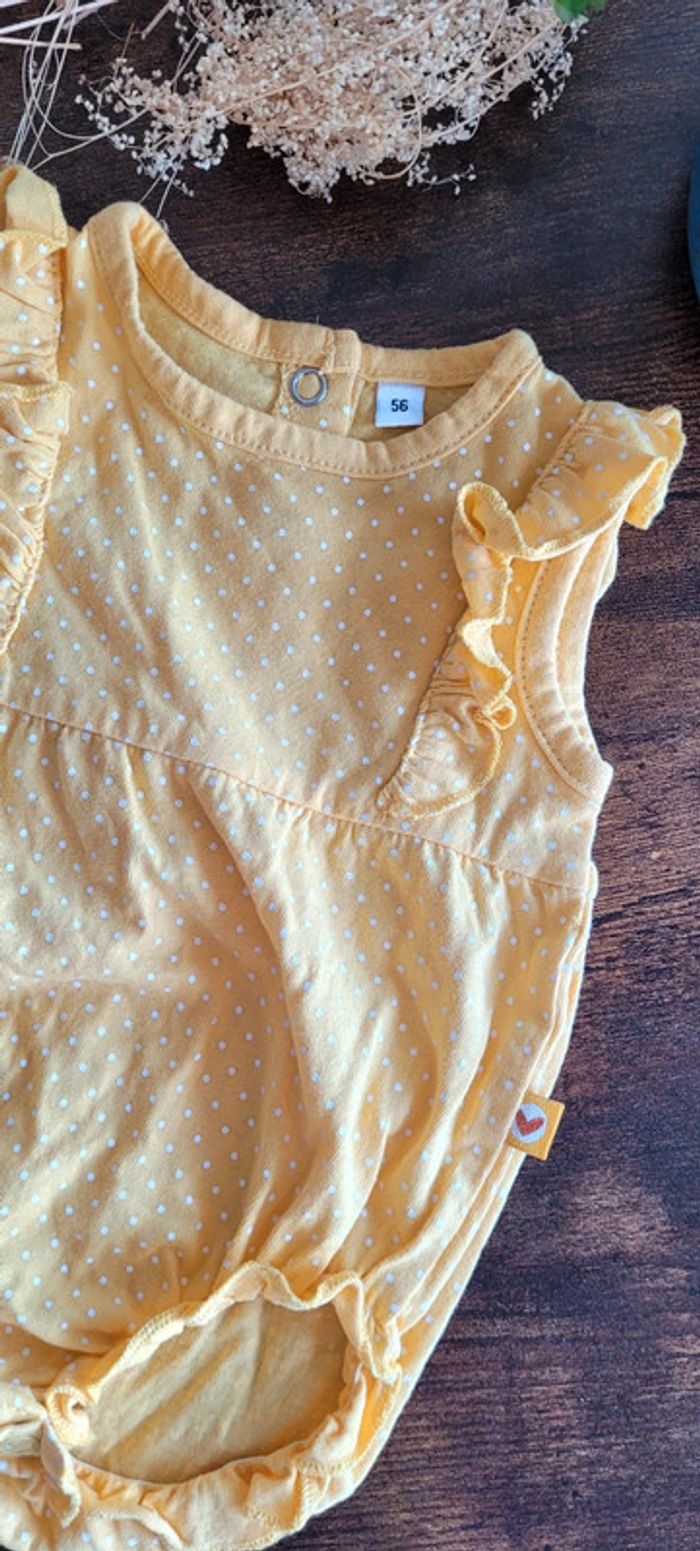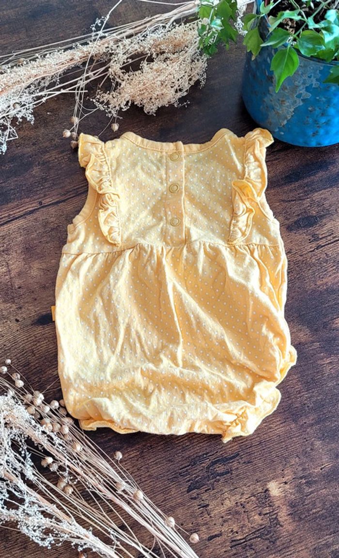Body robe/salopette jaune à pois blanc Kiabi 1mois comme neuve - photo numéro 3