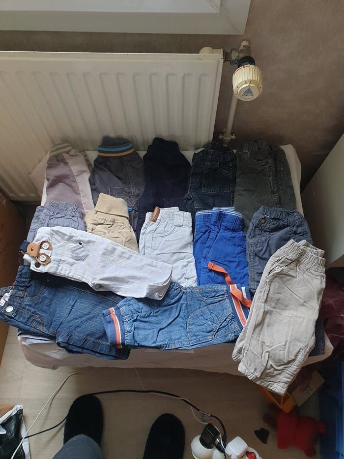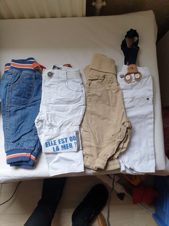 Pantalon 3mois 3 Obaibi 1 kitchoun 1 Kimbaloo 2 elle est ou la mer 1 petit bateau 1 H&M 2 kiabi (1 vendu) 3 sans marque Les 2blancs on des taches donc je donne Certain en très bonne etat, d'autre bonne etat. Vous pouvez voir le détail des articles sur mon dressing