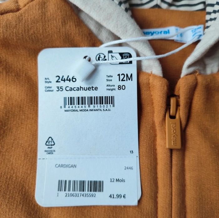 Sweat à capuche couleur moutarde pour bébé de 12 mois ou 80 cm, Mayoral