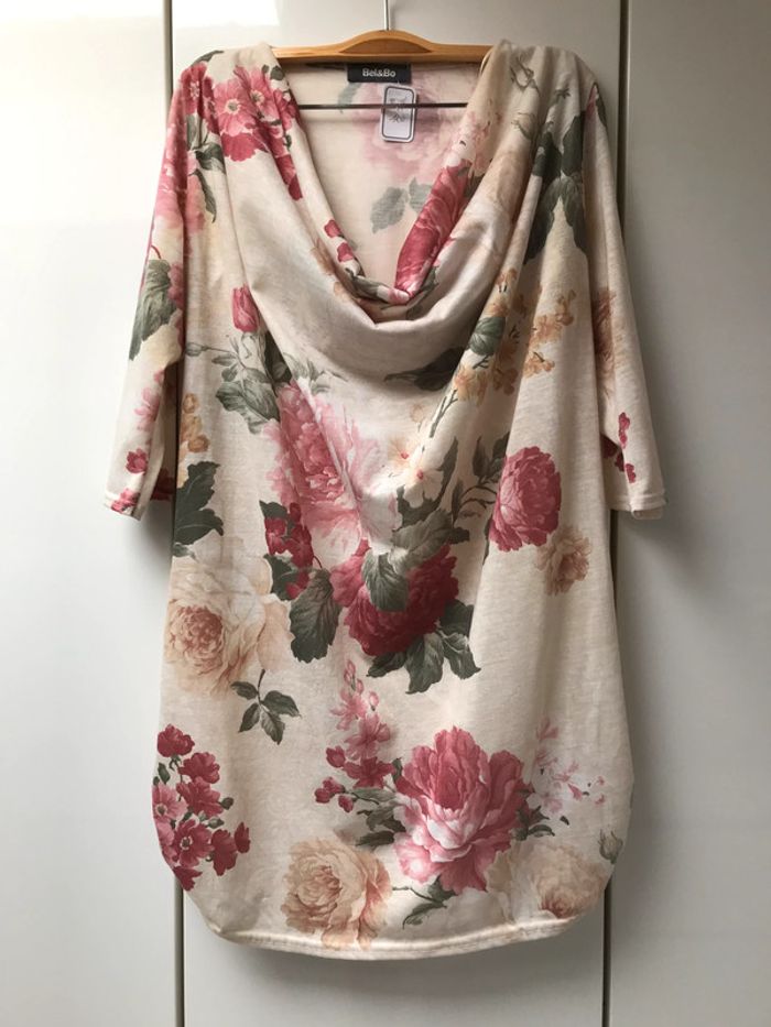 Tunique beige fleurie Bel & Bo - Taille M - photo numéro 1
