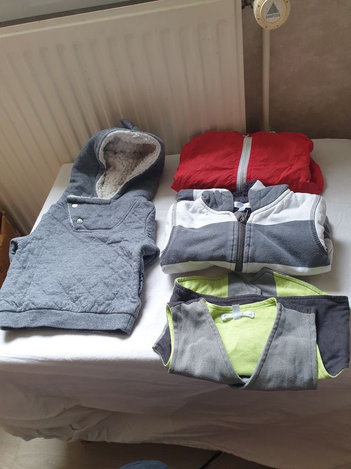 2 pulls bien chaud kiabi ( le gris vendu) 1 sur chemise kiabi 1 manteau devil child 9/12mois Certain en très bonne etat, d'autre bonne etat. Vous pouvez voir le détail des articles sur mon dressing
