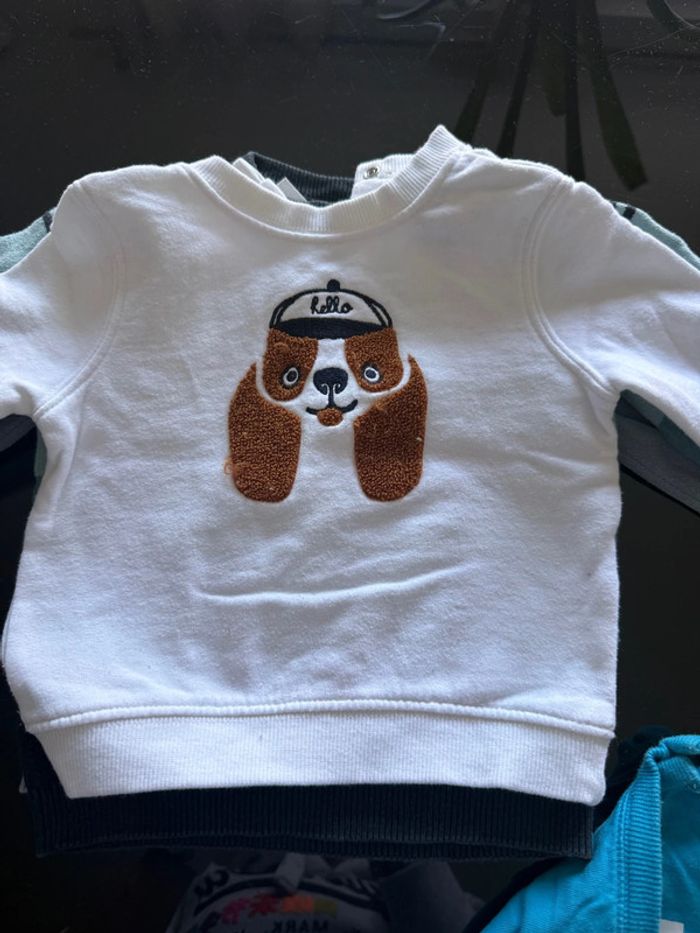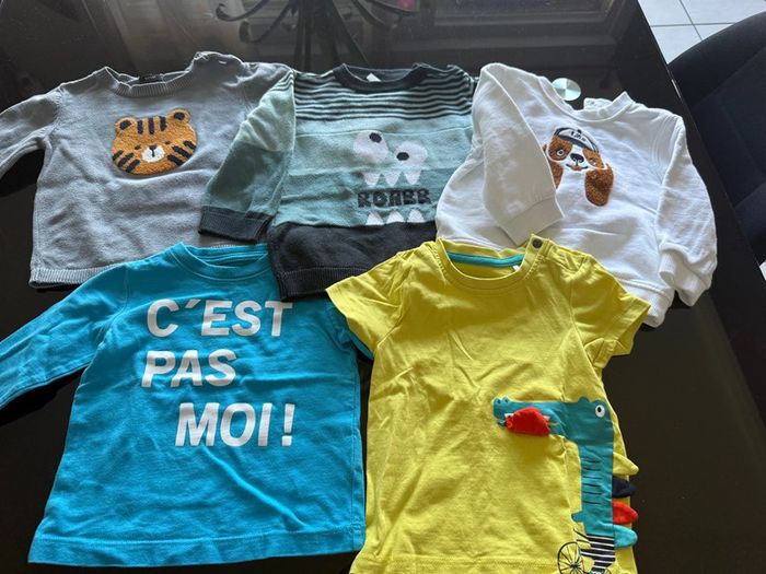 3 pulls 9 mois : deux Kiabi et un orchestra Deux tes shirts : un manche longue et un manche courte Parfait état