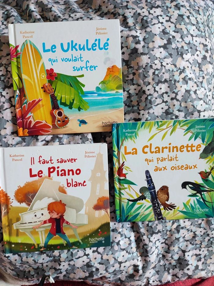 Livre mcdo 3€ le lot Collection "en avant la musique" - le ukulélé qui voulait surfer - il faut sauver le piano blanc - la clarinette qui parlait aux oiseaux