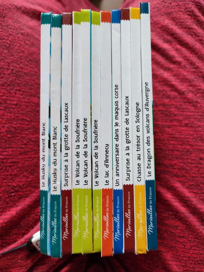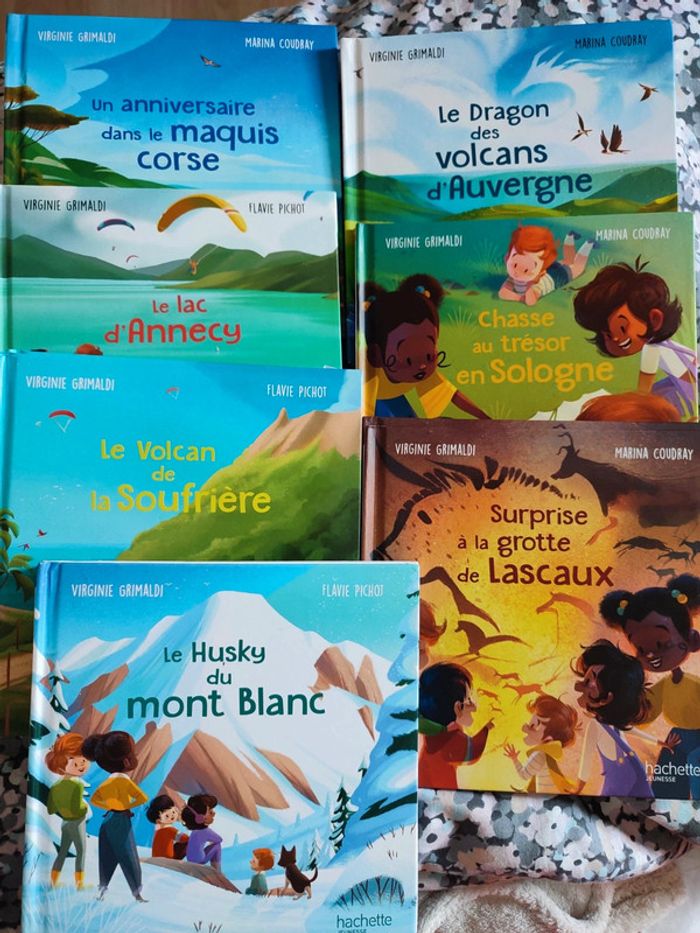 Livre McDo 1€ pièce Collection "merveilles de France" - surprise à la grotte de Lascaux - chasse au trésor en Sologne - le dragon des volcans d'Auvergne - un anniversaire dans le maquis corse - le lac d'Annecy - le volcan de la Soufrière - le husky du mont blanc