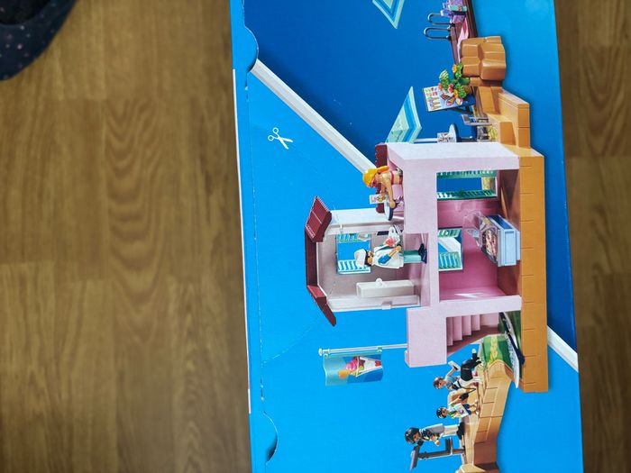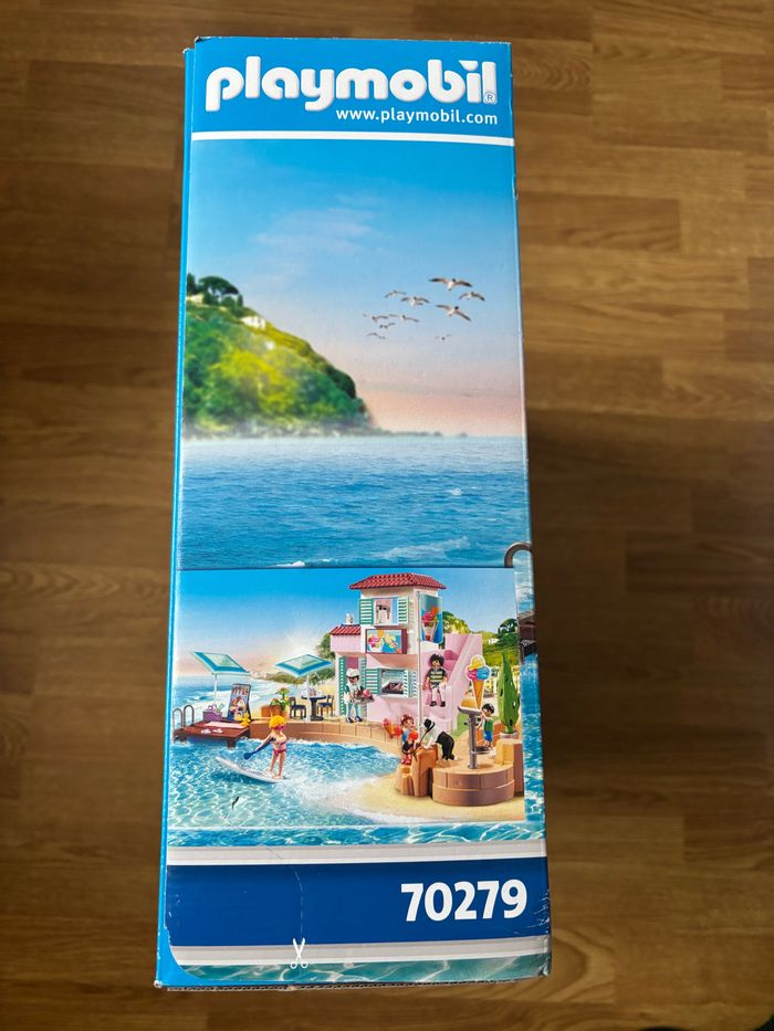 Le set propose 5 personnages, un bâtiment glacier avec volets, escaliers et balcon. Le mur de quai avec passerelle et longue vue pour observer l’horizon.