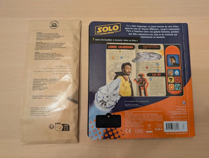 Livre sonore Solo Star Wars Une trousse neuve Original Stormtrooper donné avec Le livre fonctionne parfaitement bien Présente des traces sur les couvertures