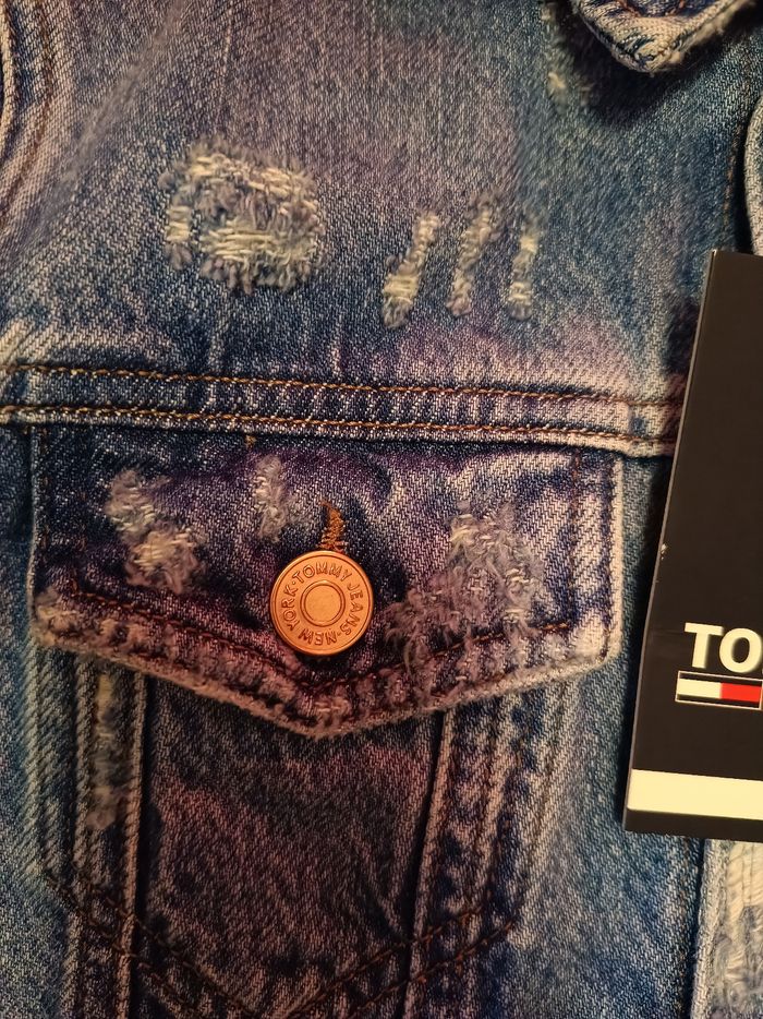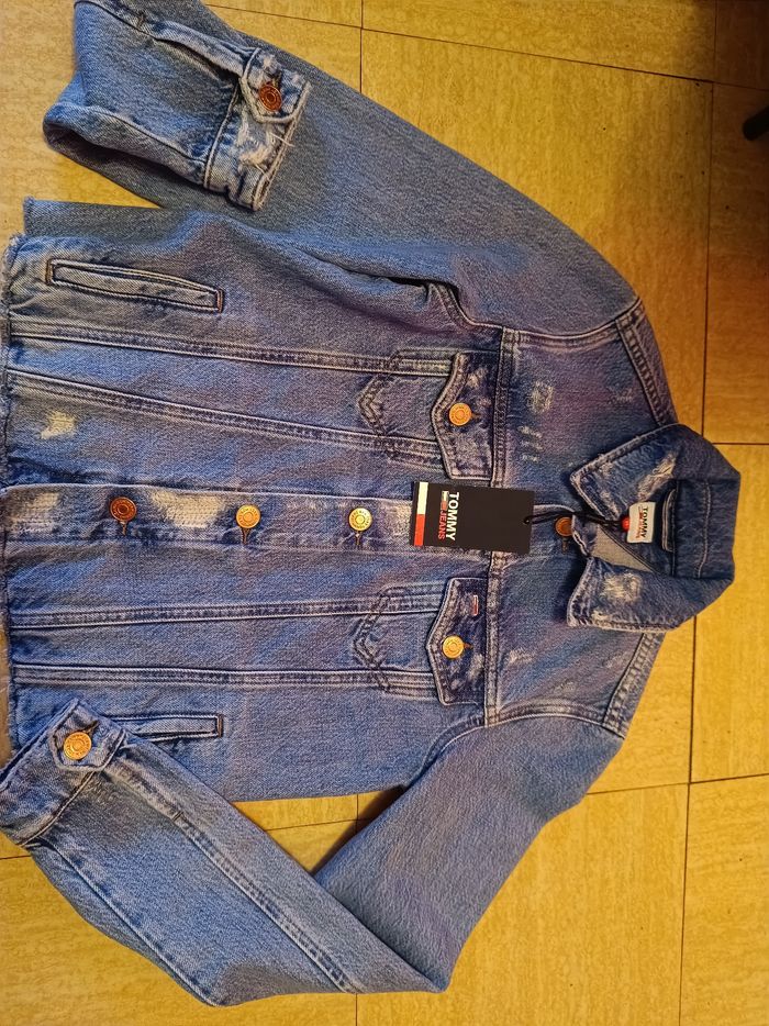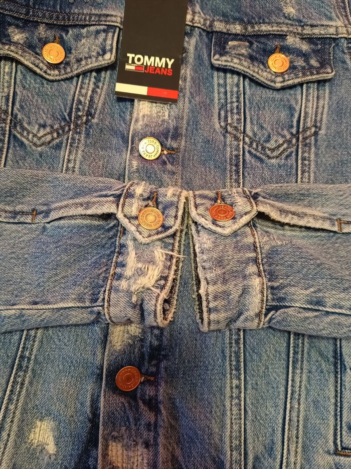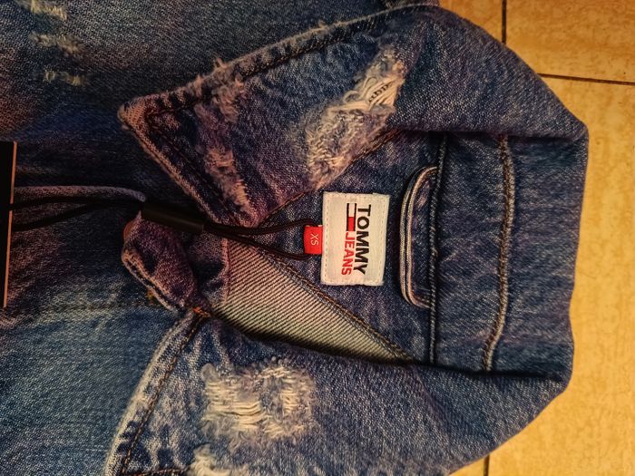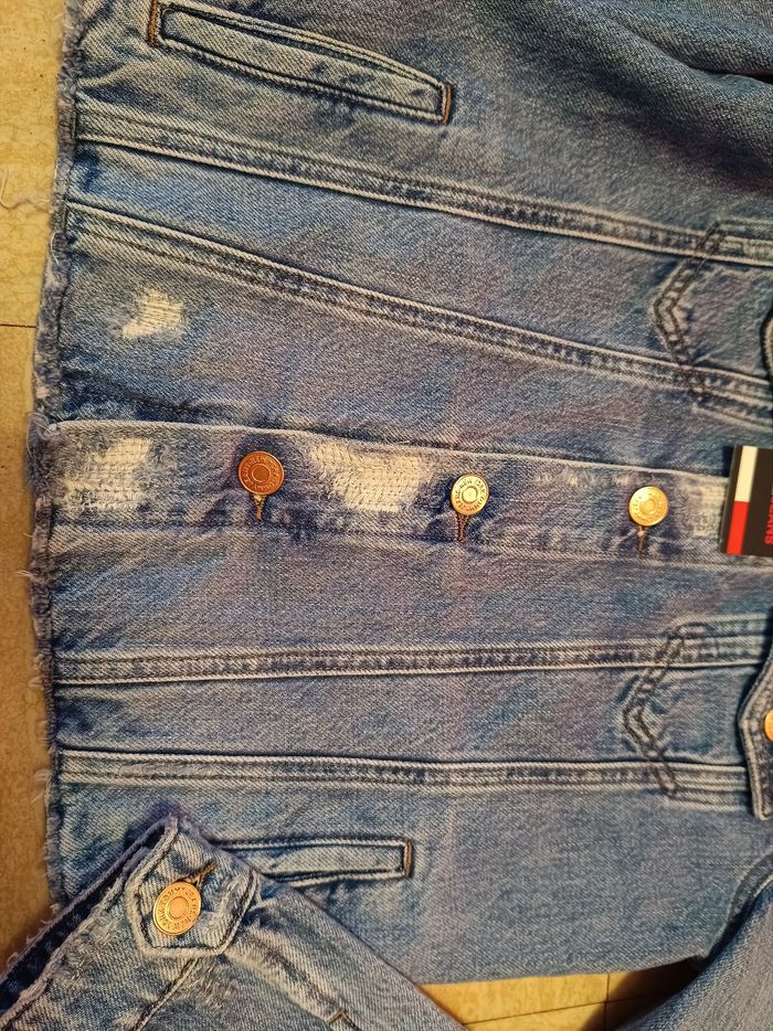 Veste en jeans bleu destroye sur le devant avec 2 poches taille XS neuve avec étiquette