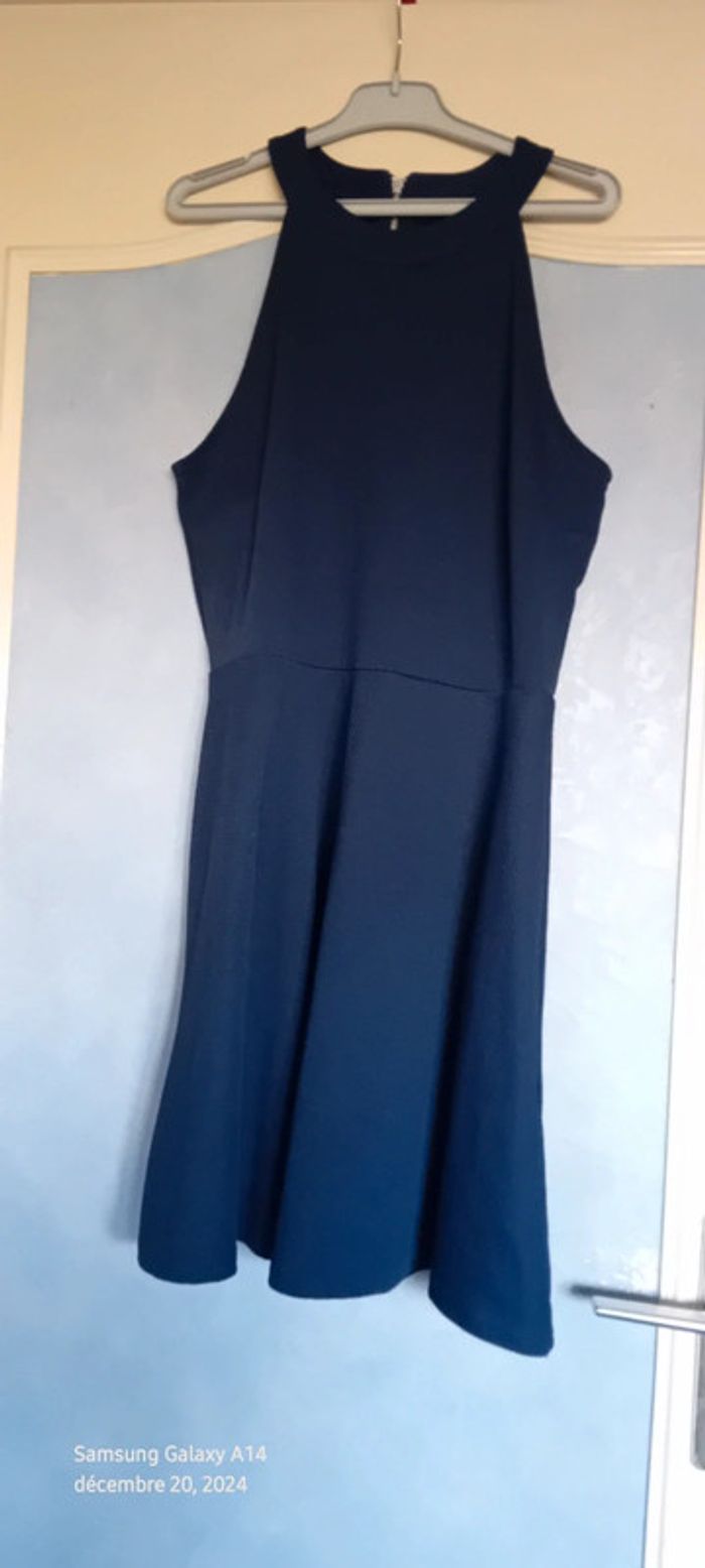 Robe chic épaules dénudées maille abeille bleu femme S H&M - photo numéro 14