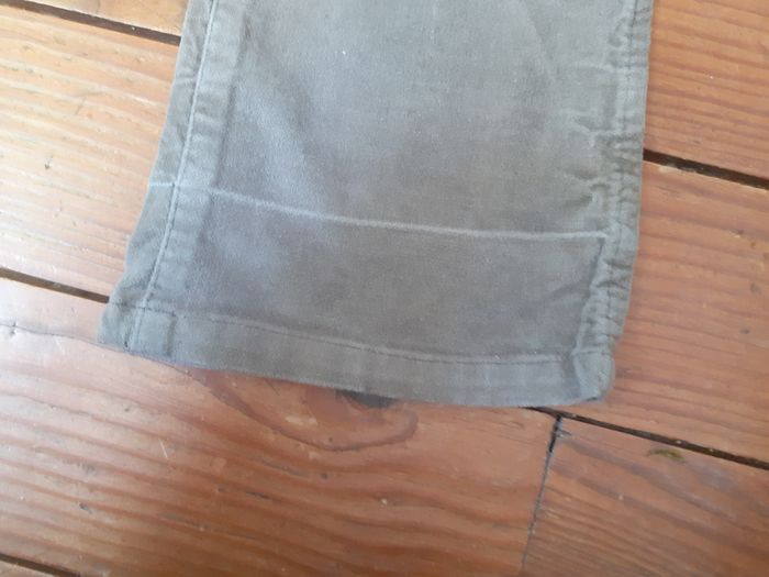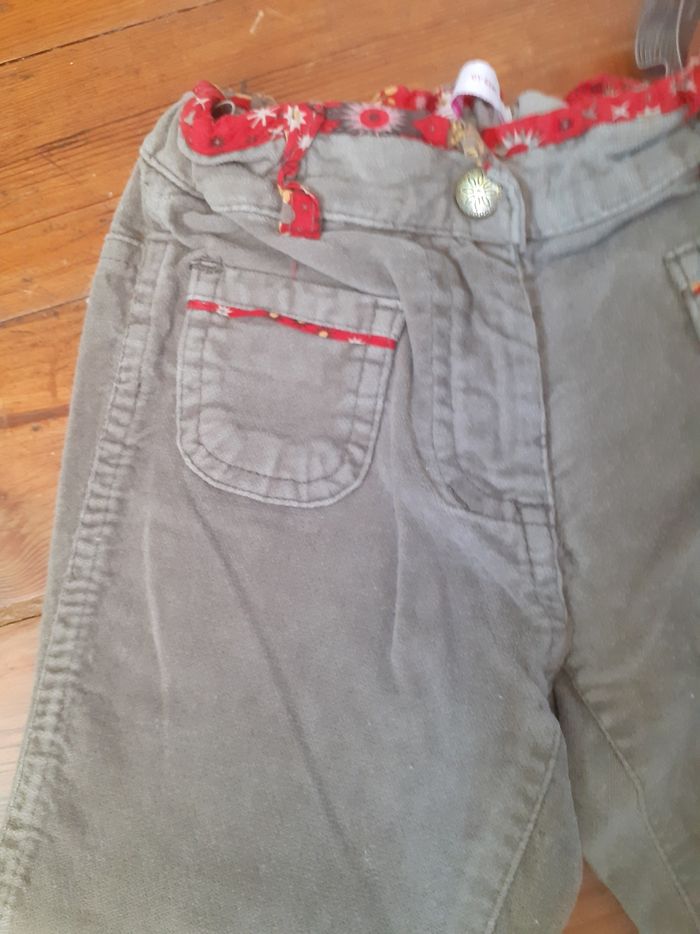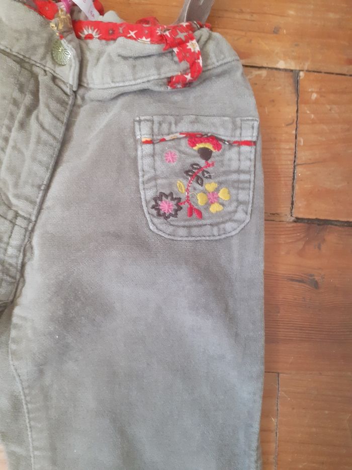 Pantalon en velours gris motif petites fleurs brodées multi poches 5 ans (marques de plis au fond de l'ourlet)