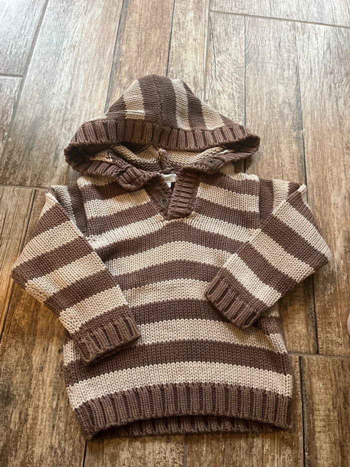 Pull à capuche garçon marron à rayures 36 mois