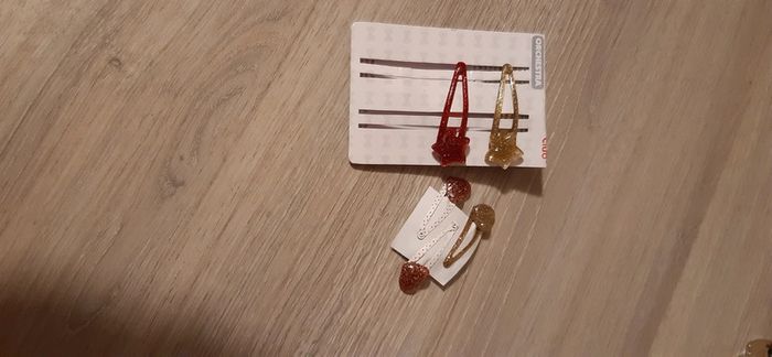 Lot de 5 pinces pliantes rouge / dorée pailletées neuves et en très bon état - photo numéro 2