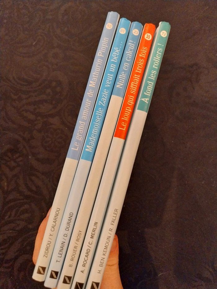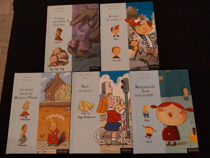 Lot de 5 romans Nathan jeune lecteur A fond les rollers Le loup qui sifflait trois fois Nulle en calcul Mademoiselle zazie veut un bébé Le grand amour de mathurin pinpin