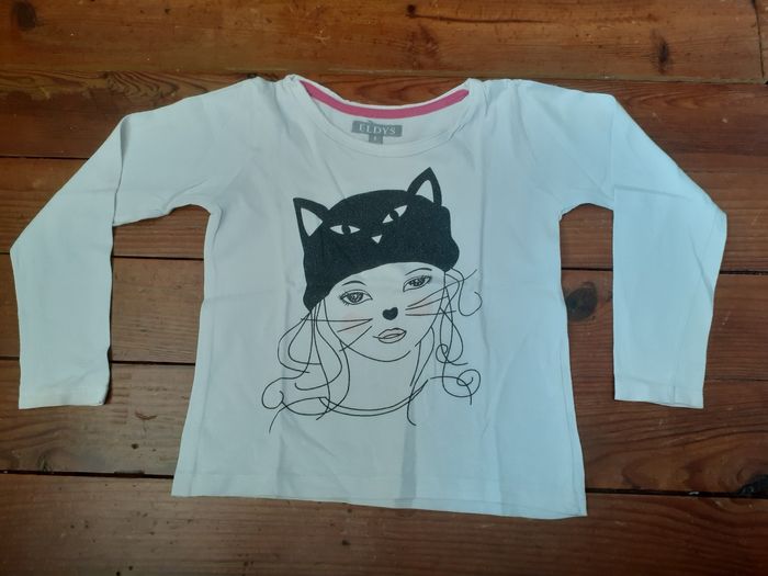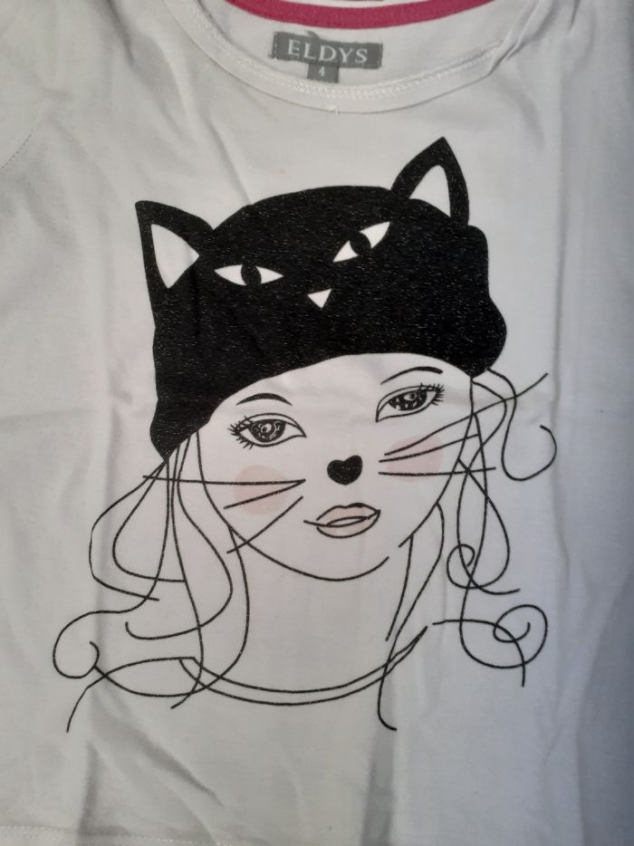 Sweet blanc motif femme avec bonnet chat 4 ans ( léger trait sur le bras)