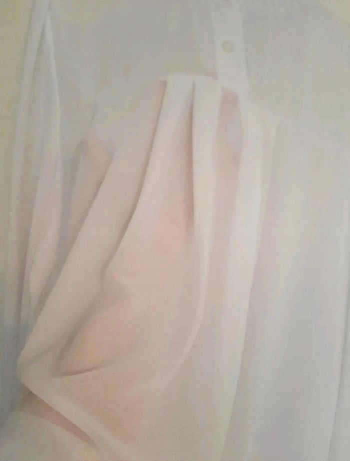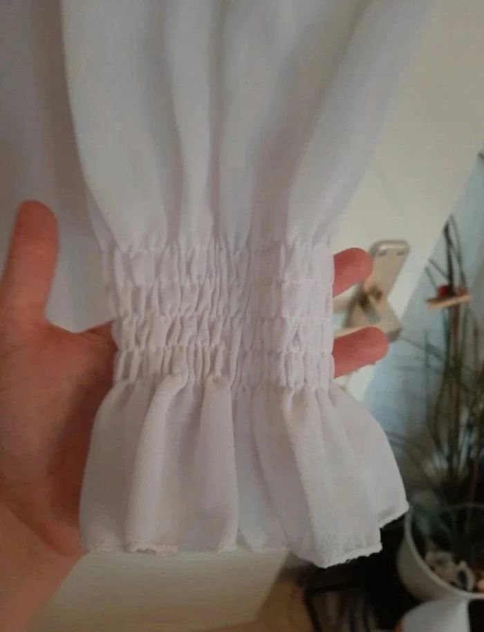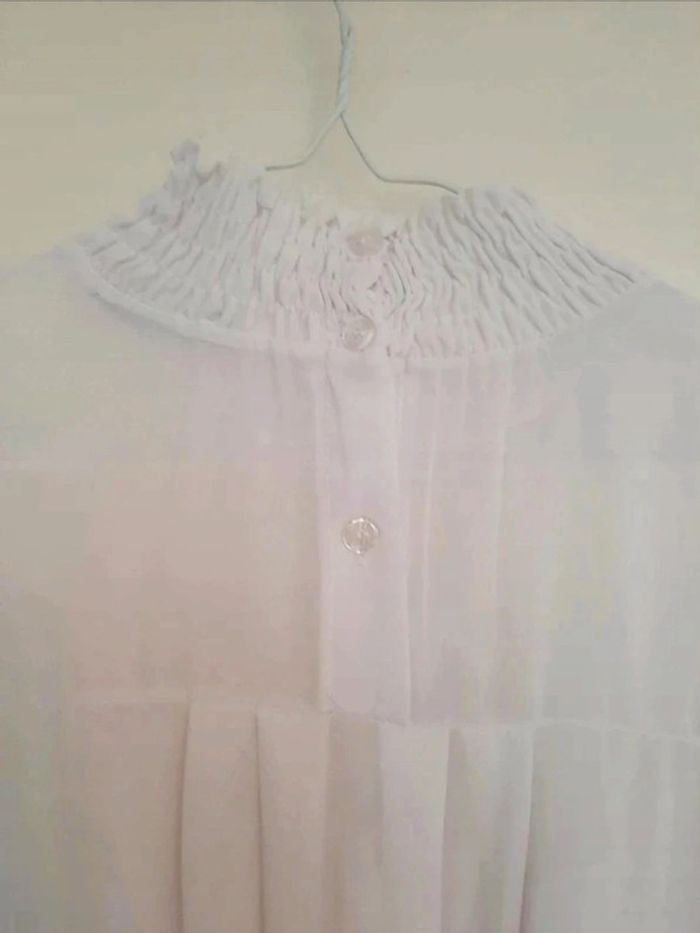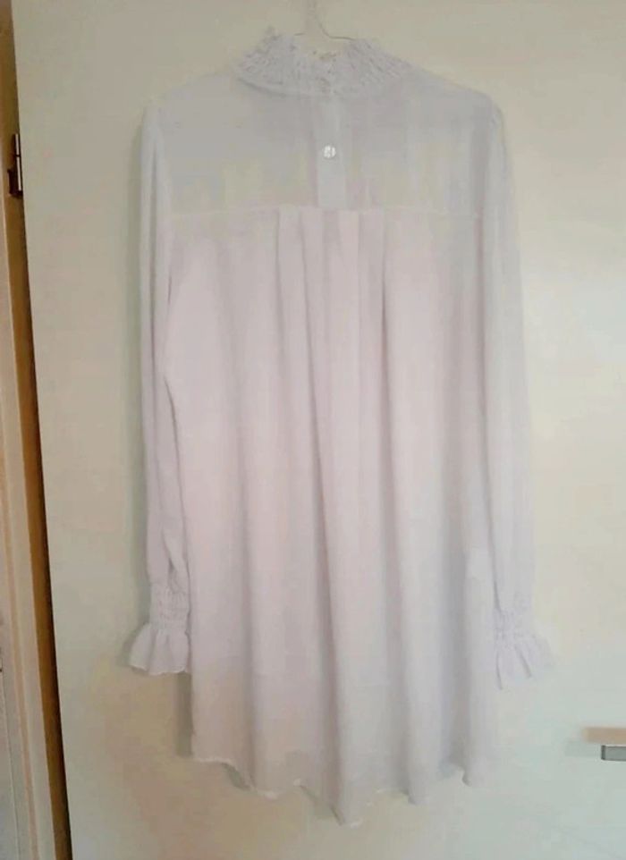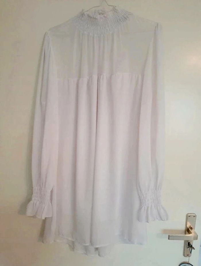 Superbe tunique/robe Boohoo taille M blanche. Manches longues avec bouts des manches un peu froncées. Boutons à l'arrière avec petite transparence. Col montant. Jamais portée. Je la vends au prix de 20 euros. #TailleM38marine
