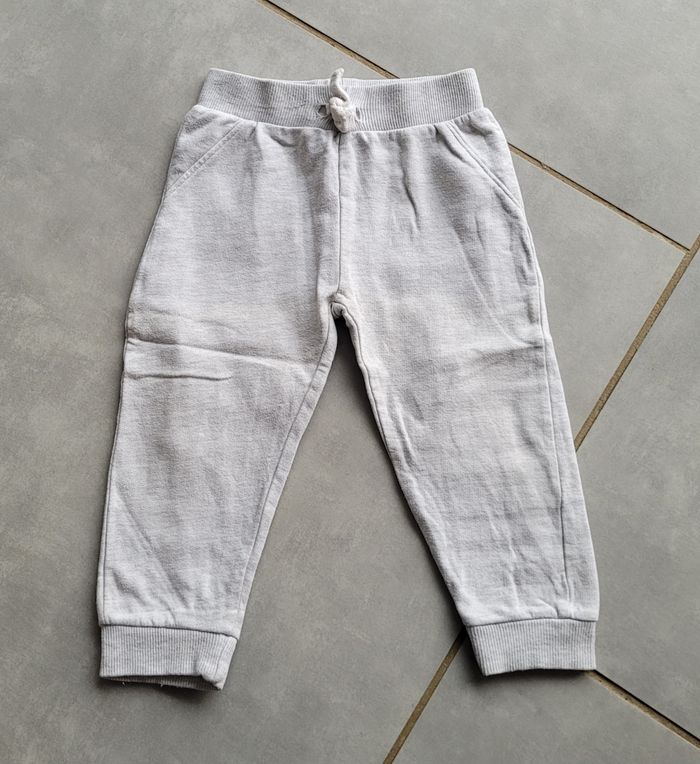 Jogging de couleur gris clair, taille 24 mois (86 cm), en très bon état. Article lavé pour la vente.