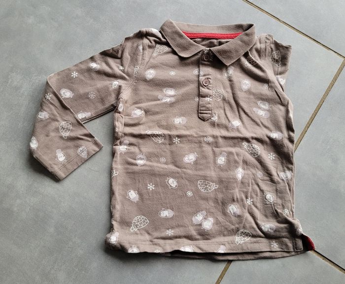Polo manches longues, de couleur marron clair avec motifs, de la marque In Extenso, taille 24 mois (92 cm), en très bon état. Article lavé pour la vente.