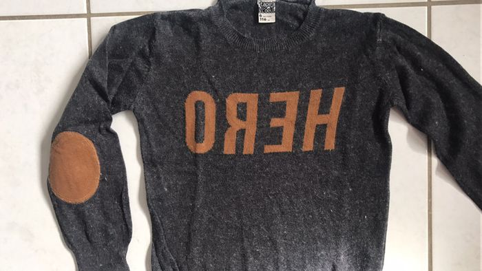 pull garçon motif Hero possède quelques bouloches N'hésitez pas à aller voir mes autres ventes classées par #eloio 😉 #eloiogarcon6ans #eloiogarcon5ans #eloiotao