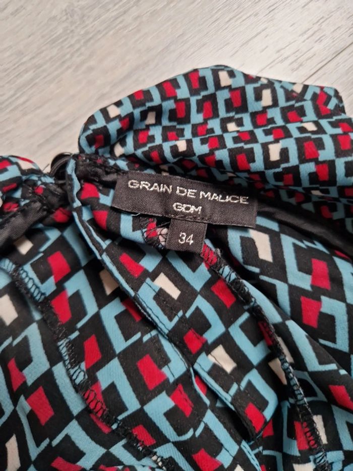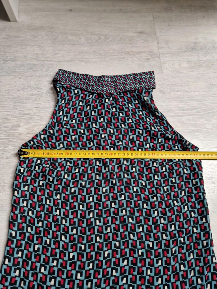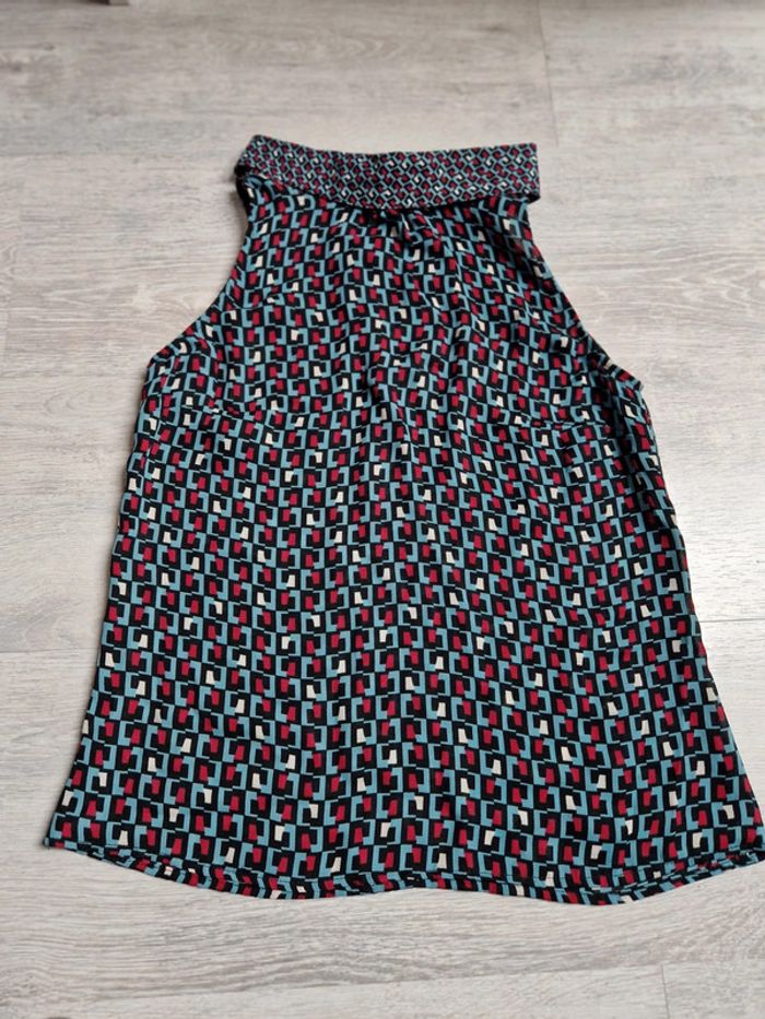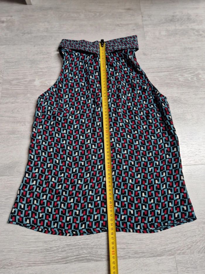 Blouse légère grain de malice taille 34 #julilo7femme Portée une fois Motifs géométriques bleus rouges et blancs Bouton dans la nuque