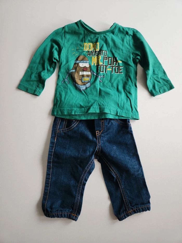 Ensemble enfant 9 mois 74/76 cm en très bon état avec 1 t-shirt Zara baby et 1 jeans kitchoun.