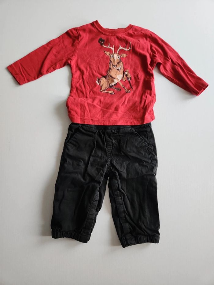 Ensemble enfant 9 mois 71/74cm en très bon état avec 1 t-shirt manche longue Zara baby et 1 pantalon taille haute tape à l'œil.