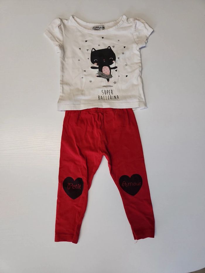 Ensemble filles 18 mois 81/86 cm avec 1 bas de la marque Barbouillage et 1 t-shirt de la marque Bougli Bougla en bon état