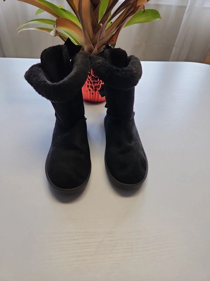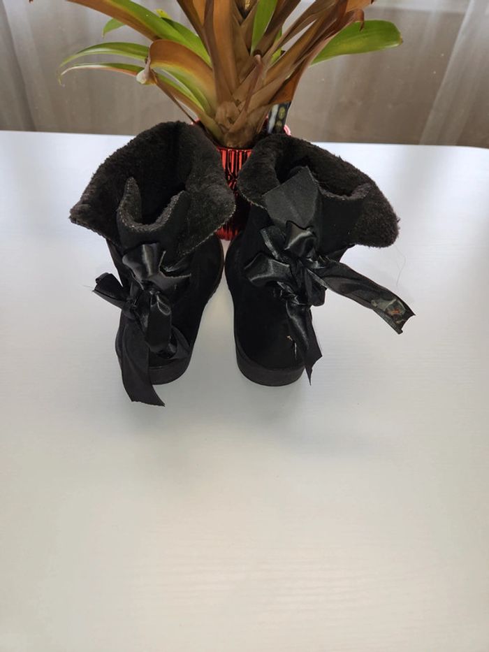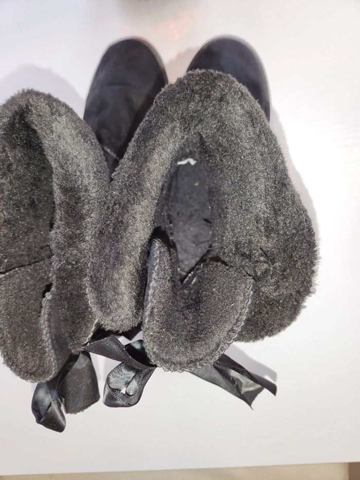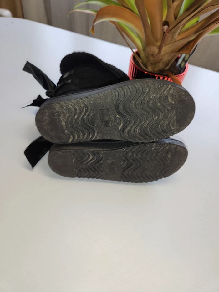 Bottes fourrées chaudes femme avec ruban satiné et fourrure synthétique en bon état la pointure 37