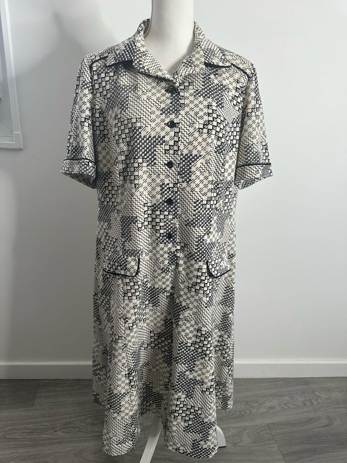 Robe bariolée géométrique damier beige crème et noire Vintage T44 XXL - photo numéro 1