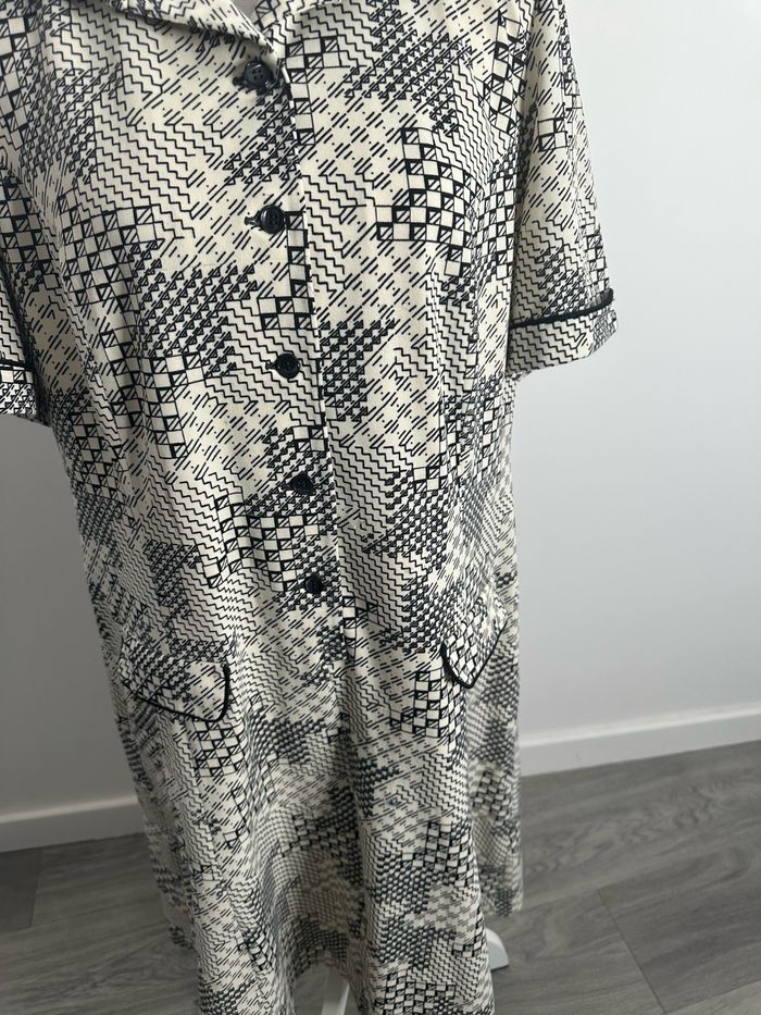 Robe bariolée géométrique damier beige crème et noire Vintage T44 XXL - photo numéro 6