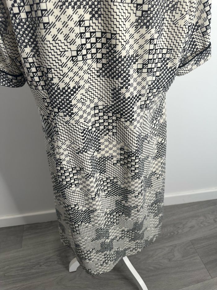 Robe bariolée géométrique damier beige crème et noire Vintage T44 XXL - photo numéro 8
