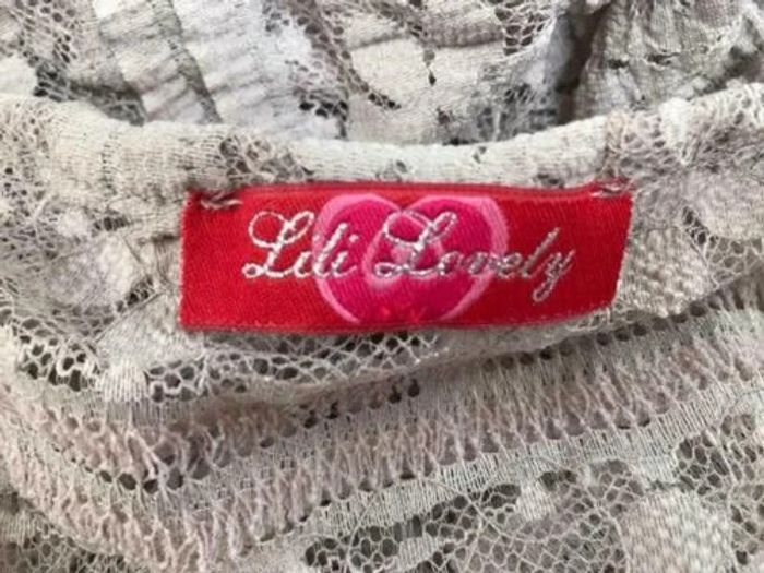 Tunique beige Lili Lovely transparente en dentelle Taille 2, extensible La mesure d'aisselle à aisselle est de 46 cm. La longueur est de 91 cm.