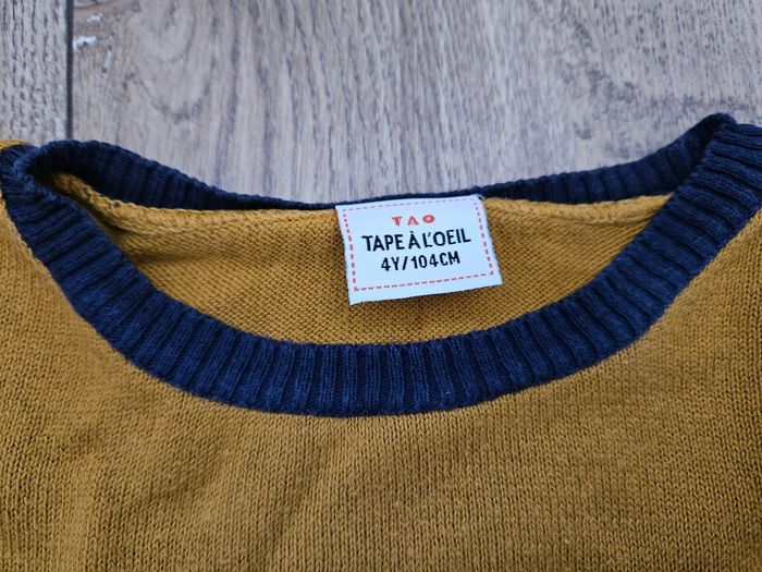 Pull col rond bleu marine et moutarde Tape à l'oeil 4 ans - photo numéro 1