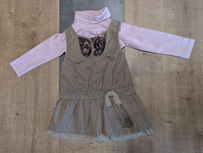 Vends ensemble pour bébé fille se composant d une robe et d un sous pull de la marque la compagnie des petits en très bon état Taille : 3 ans